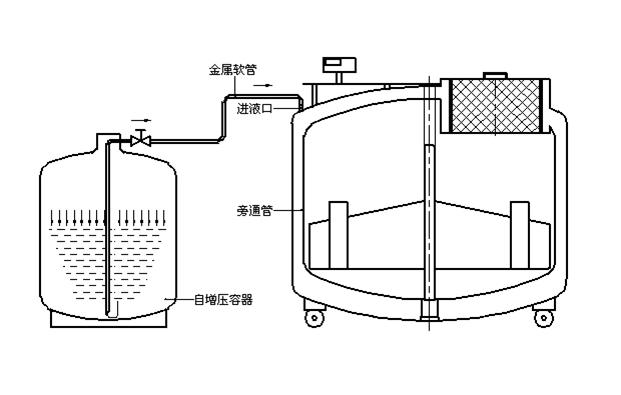 補給罐與(yu) 液氮儲(chu) 存罐之間采用法蘭(lan) 真空軟管柔性連接.