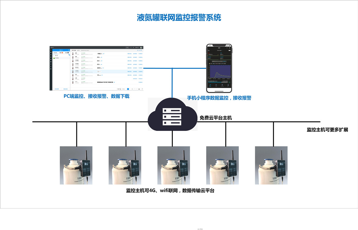 液氮罐聯網監控係統是一套采用Edge Meter係列監控設備BD-200A液氮罐超低溫監控儀(yi) 利用物聯網監控模式對液氮罐液位進行液位監控的一體(ti) 化監控係統。該係統具有操作方便,手機小程序和PC端都可監控液氮罐溫度及接收低液位監控報警。係統可提供電壓報警,適合遠途運輸型液氮罐使用。一體(ti) 化液氮罐聯網監控係統隻用一部手機即可監控N台液氮罐,接收液位報警信息。並使用PC端平台下載溫度記錄。主機能夠24小時全天候在線工作。